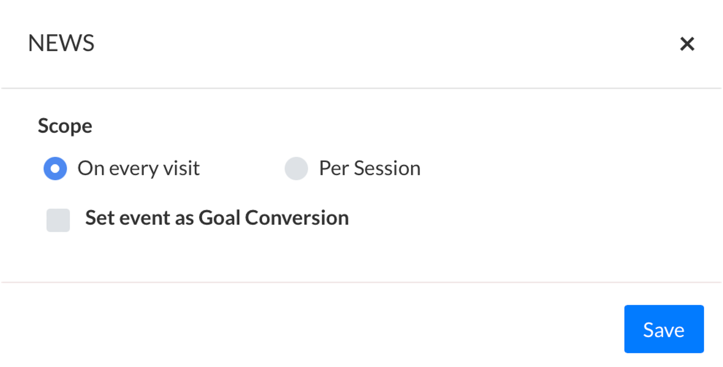 - "Per Session": When you choose "Per Session," the event is tracked once during a single user session. It allows you to gather data specific to a user's session, which can be particularly useful for monitoring actions within a single visit.