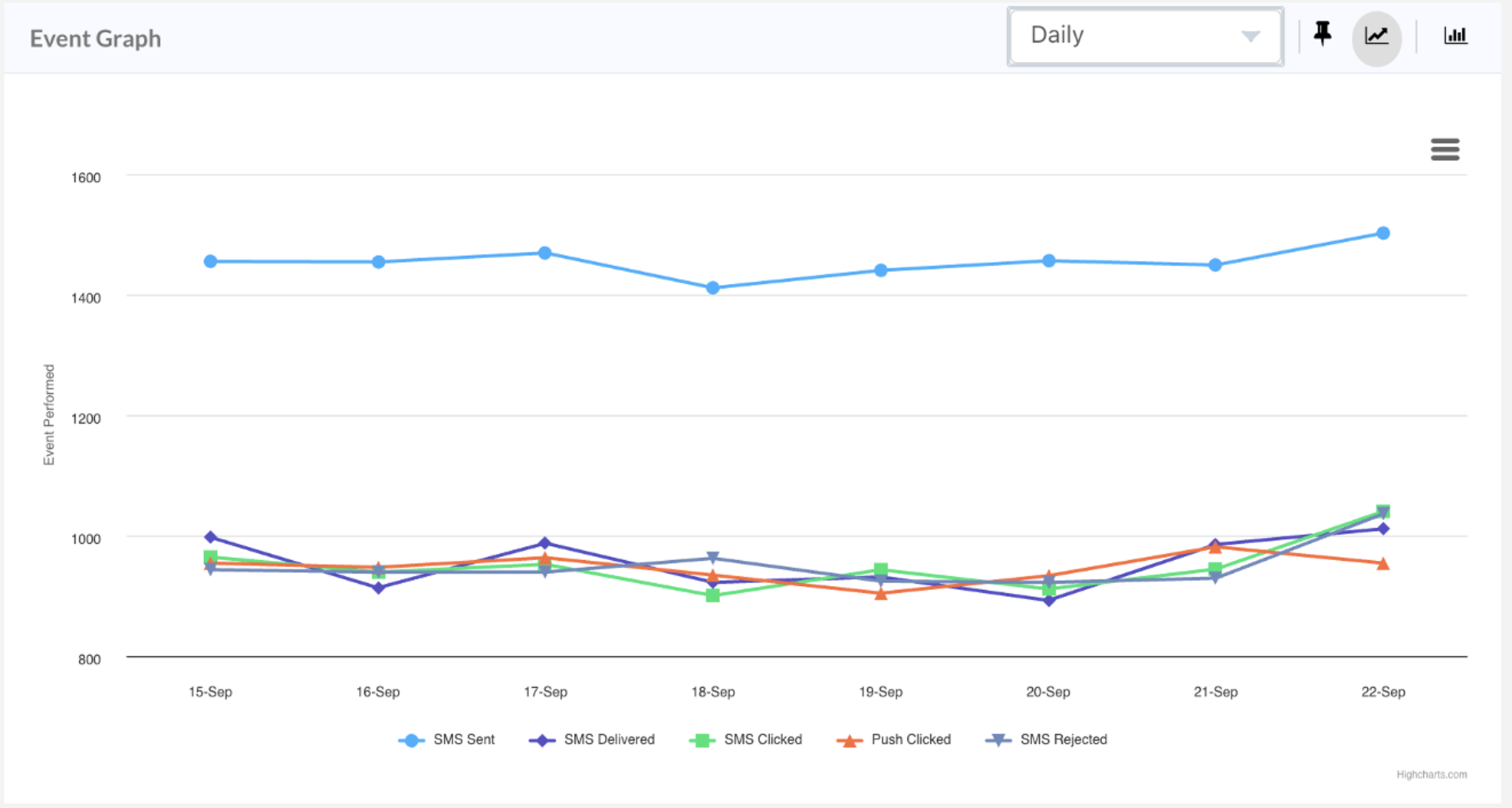 For the purpose of explanation, we’ve selected ‘Add to Cart’ event and ‘Total Events’ from the trends dropdown. Let’s dive into analytics.